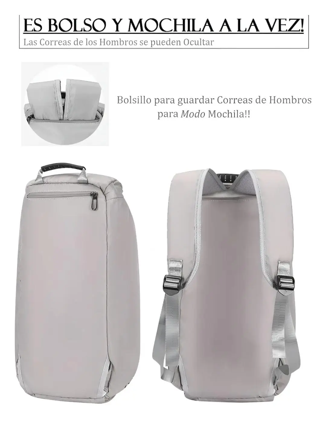 Con 3 posiciones de uso (mochila, bolso de mano o al hombro), se adapta a tu estilo en segundos. Disponible en negro, gris y azul, para que elijas el que más combine con vos.