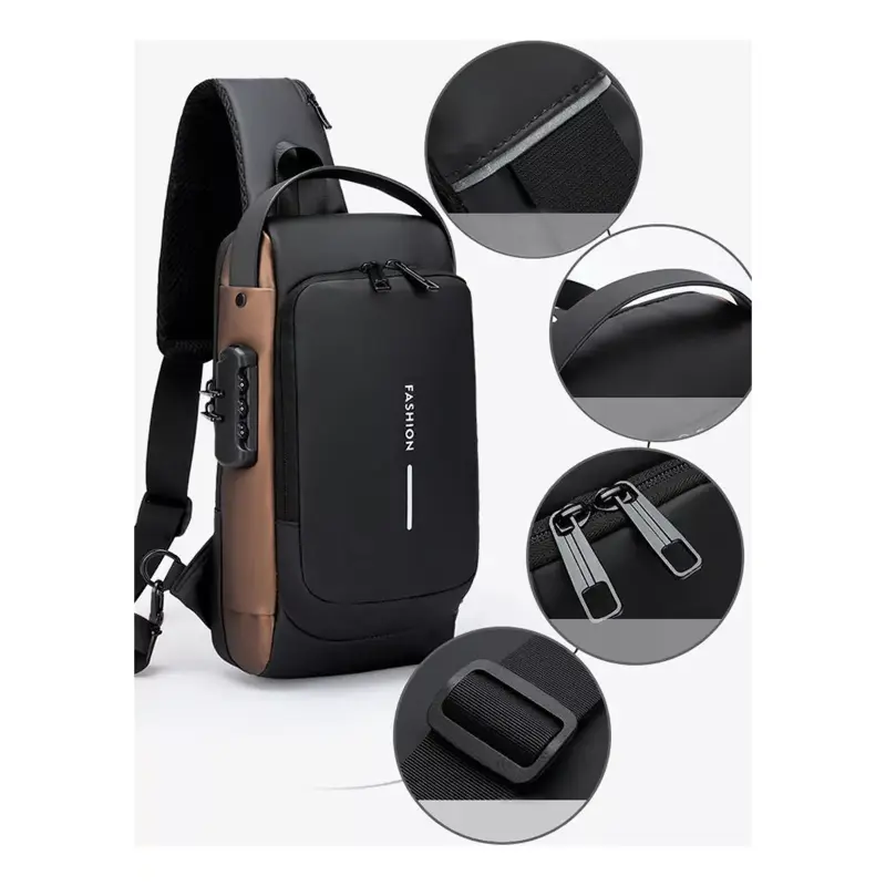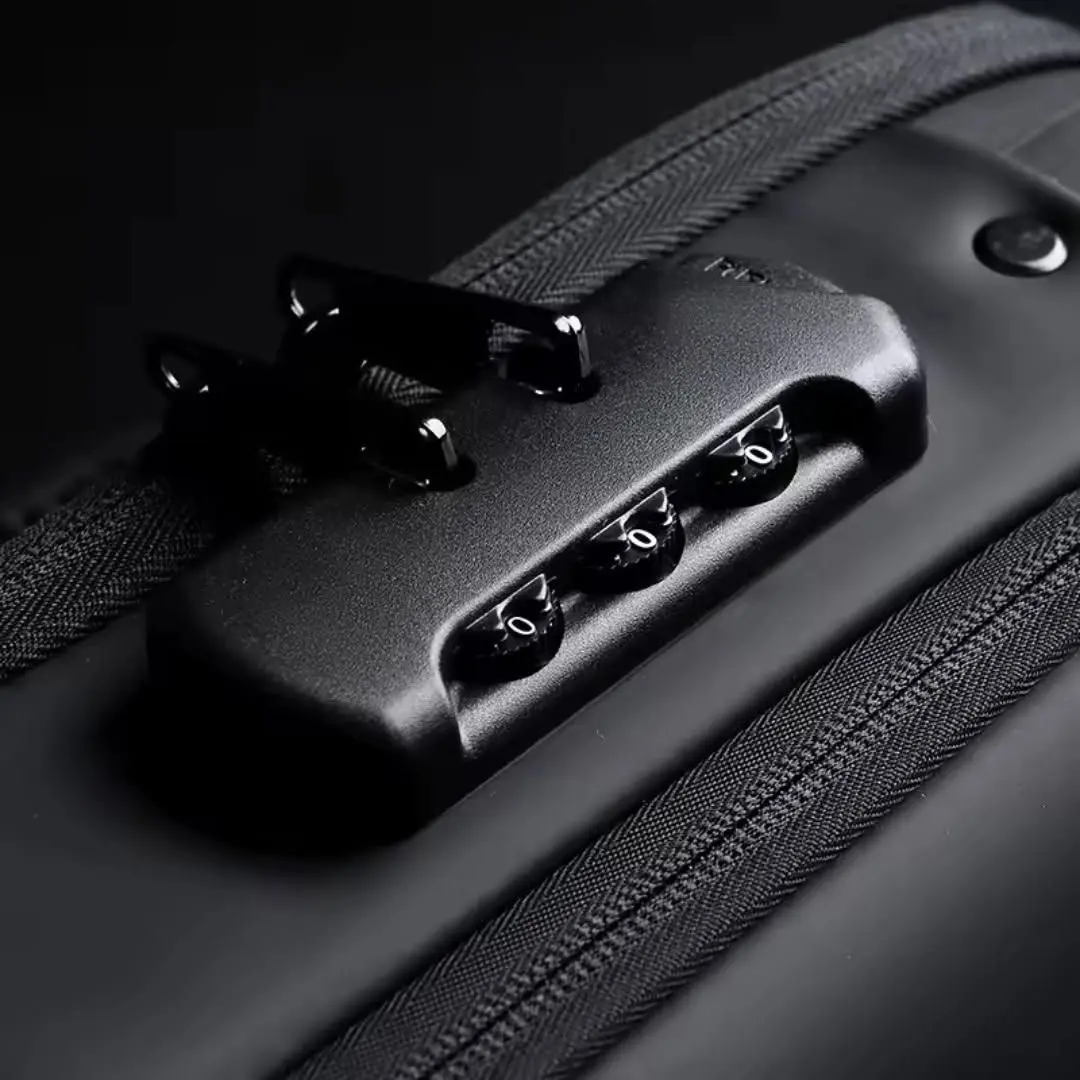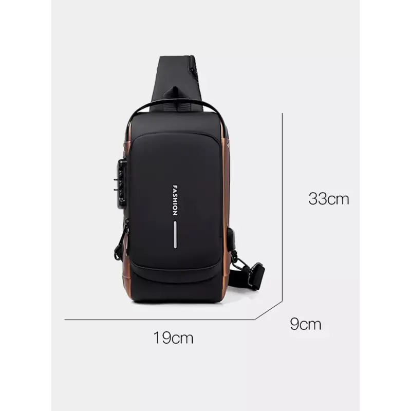 Con un diseño moderno y compacto (31 x 18 x 9 cm), cuenta con tirantes ajustables, múltiples compartimentos y un sistema de bloqueo con contraseña de 3 dígitos, ideal para evitar robos y cuidar tu privacidad. Su material Oxford de alta densidad, resistente al agua y al desgarro, garantiza durabilidad tanto en la ciudad como al aire libre.